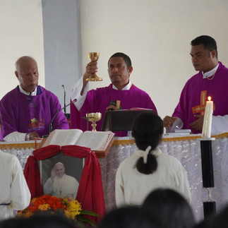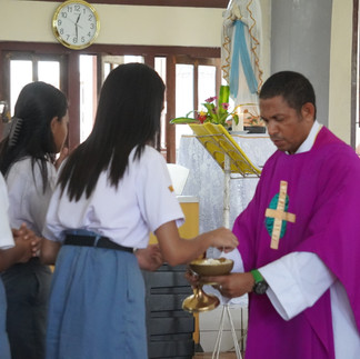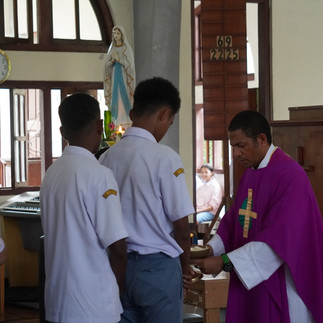 Misa dipimpin oleh Pater Naris Tonbesi, SVD sebagai konselebran didampingi Koordinator Pastoral Sekolah, Pater Aris Mada, SVD dan juga Pater Elias Doni, SVD sebagai perwakilan dari Biara Santo Mikael Syuradikara.