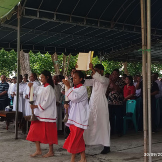 Pater Eman Embu, SVD, Provinsial SVD Ende memimpin Perayaan Syukur Keluarga ini; didampingi Pater Fidel Klau, SVD, Pater Piet Bate, SVD, dan beberapa imam konselebrantes lainnya.